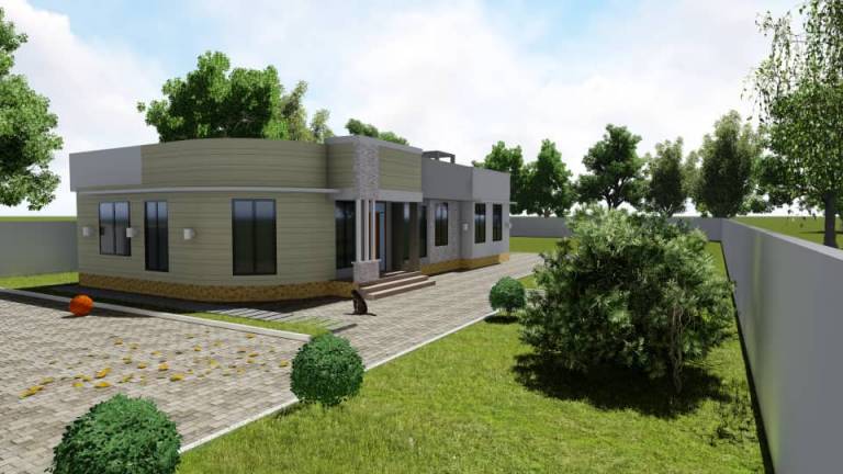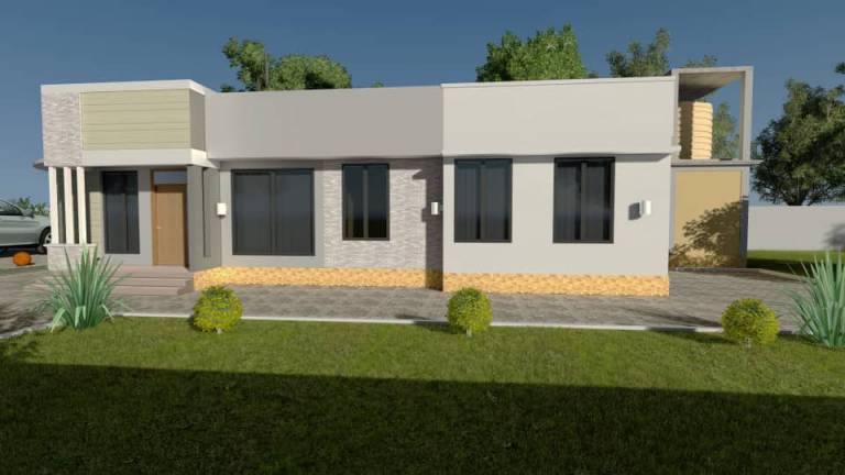 This is a contemporary three-bedrooms modern house where 2 bedrooms each has a toilet inside and a third parent bedroom has a dressing area and its own toilet inside. Build and enjoy a good life with your family. It requires a plot of at least 20x20m and you can build in a location in Africa and Worldwide, enjoy it.