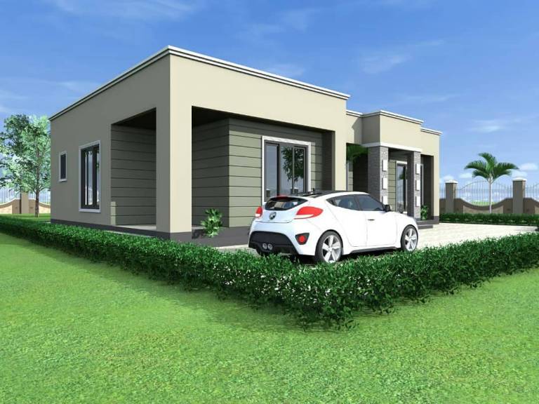 A beautiful modern house that uses a modern roofing style. It brands you uniquely when you have built it into your street. Stop building a house that resembles your colleagues or neighbours houses, instead build a unique and modern one. It has a total of 3 self-contained bedrooms. The kitchen and the living room are both spacious.